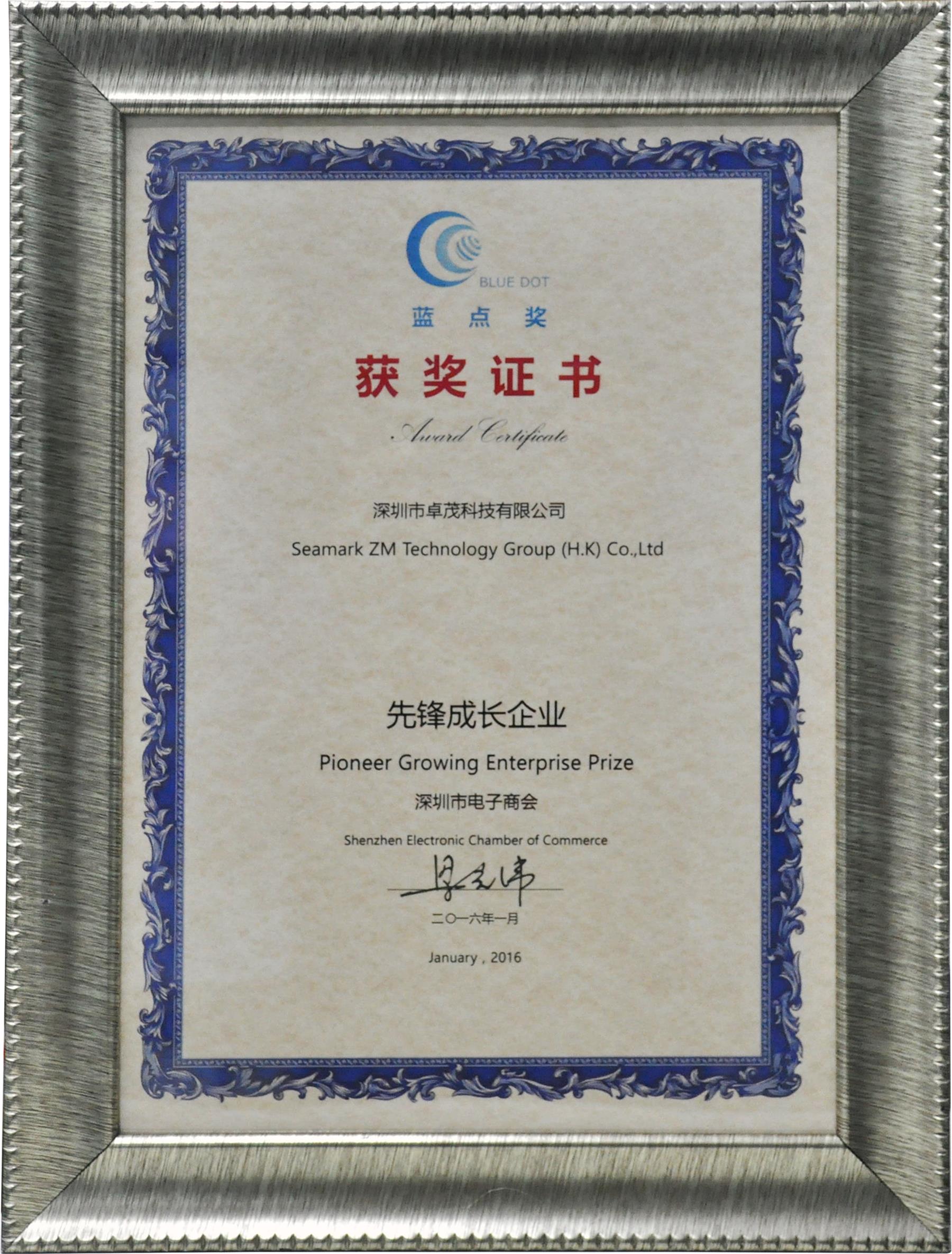 荣获深圳市电子装备产业协会颁发的社会主义先行示范区“深圳先进制造业智能装备领域拓荒牛奖”