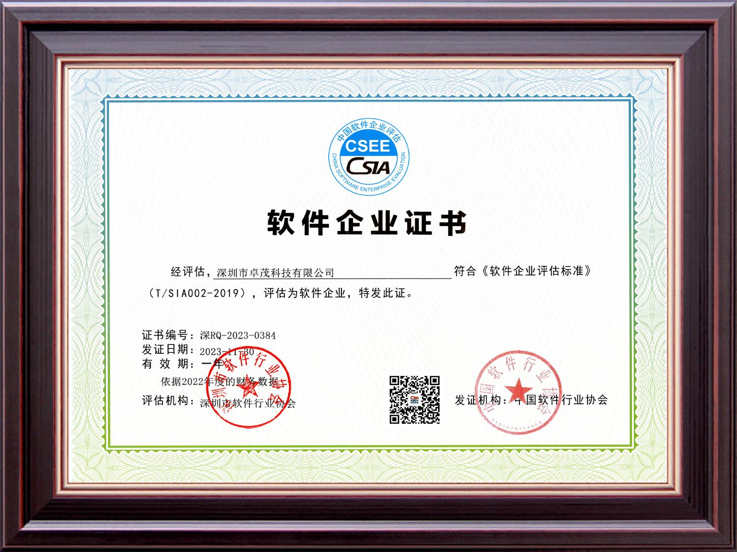 被认定为“深圳市双软企业”