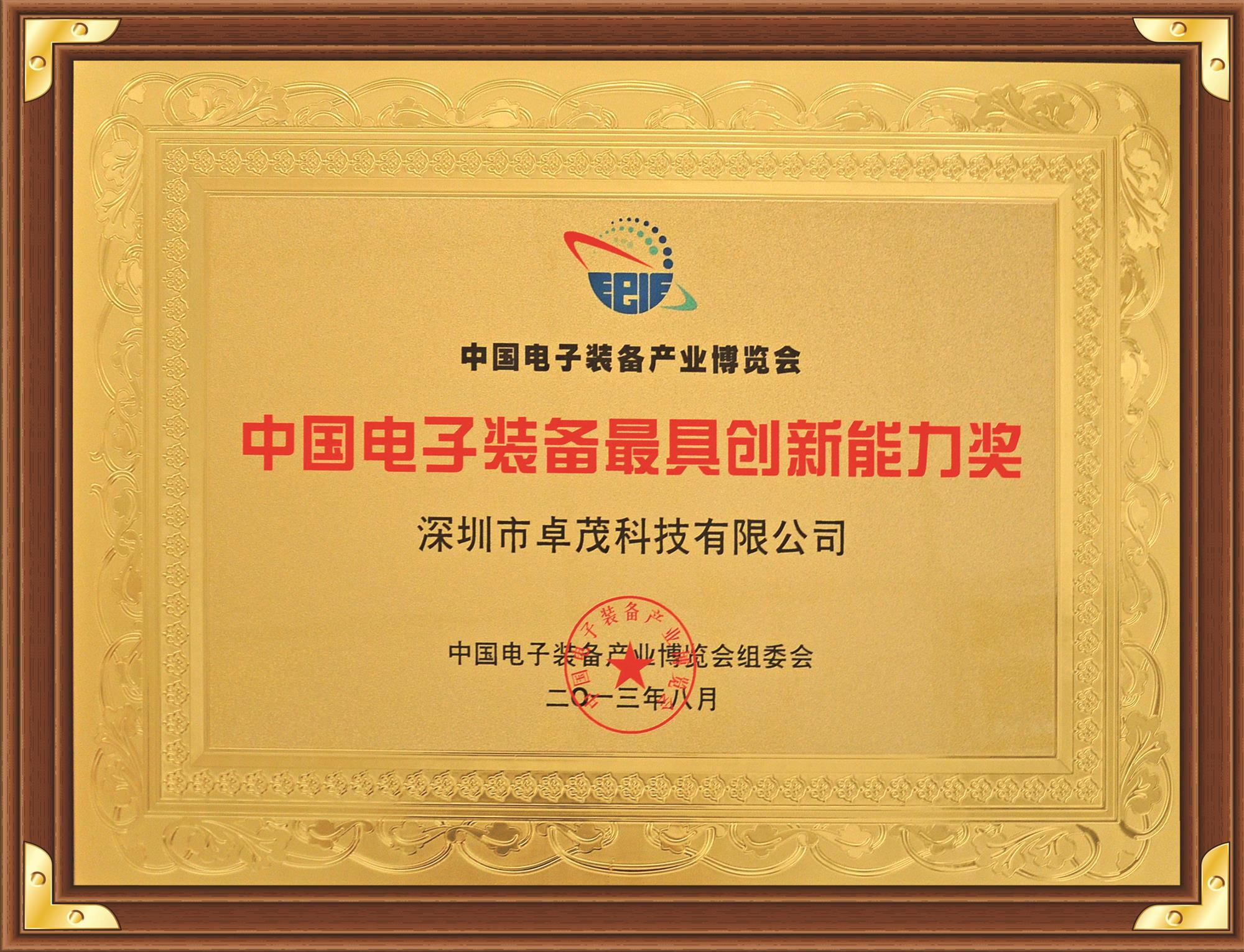 荣获中国电子装备产业博览会组委会颁发的“中国电子装备最具创新能力奖”