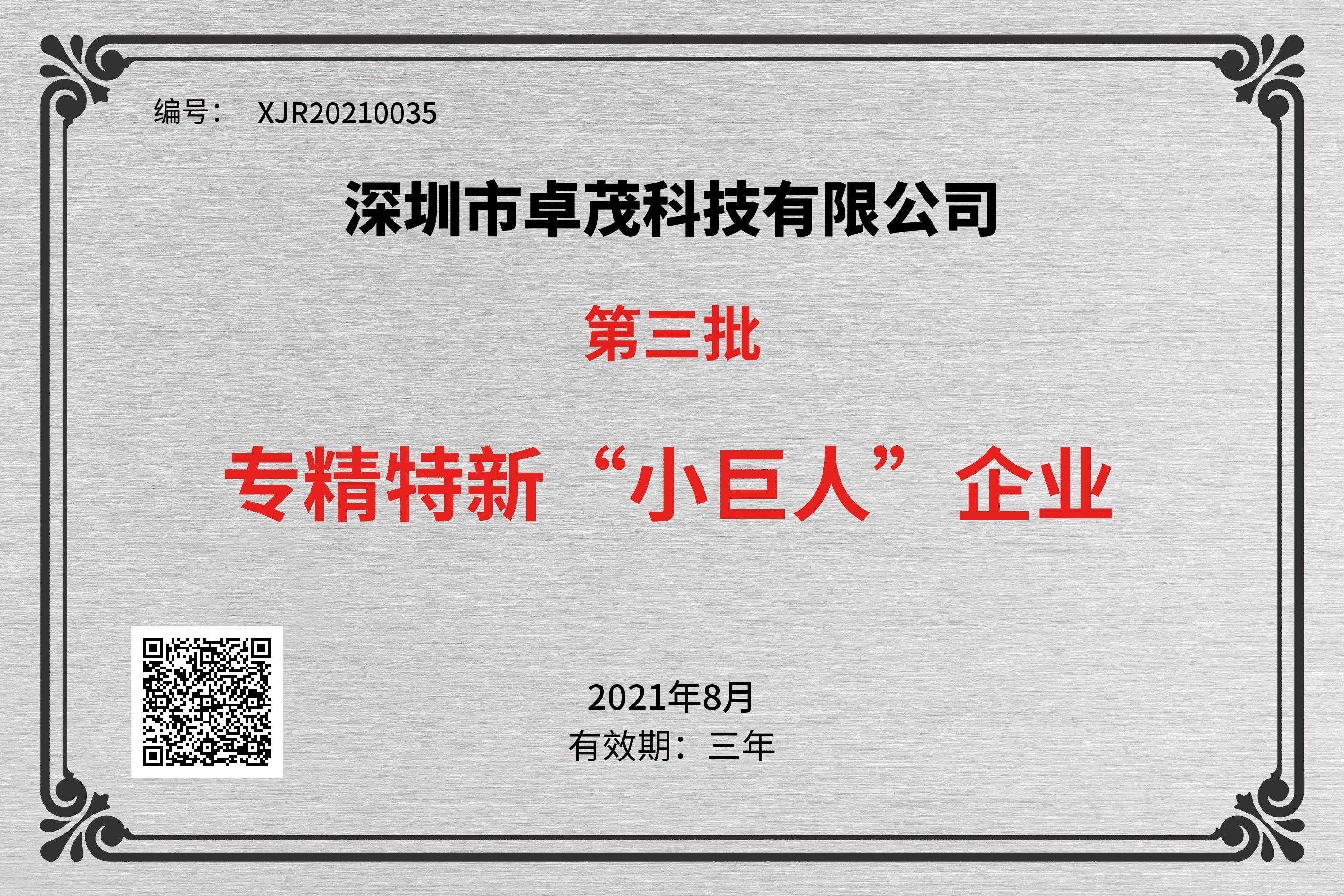 荣获工业和信息化部国家级专精特新重点“小巨人”企业
